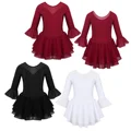 Kids Girls Tulle Long Sleeves Rhinestone Figure Ice Skating Dress Ballroom Child Gymnastics Leotard Ballerina Dance Costume